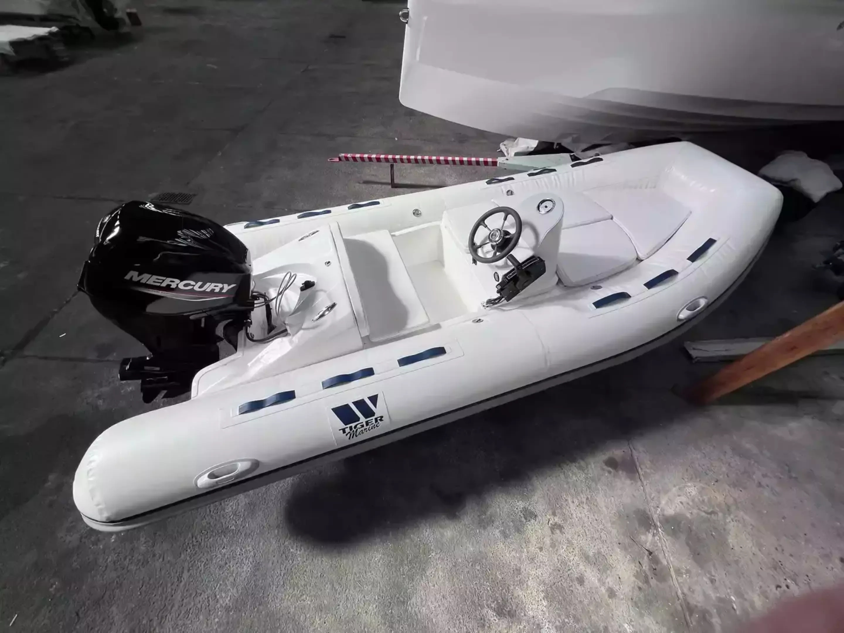 Introducing the Tiger Marine Pro Tender 430, an exceptional inflatable tender designed for versatility and reliability on the water. Whether you're seeking a compact and efficient vessel for day trips or a sturdy companion for a larger yacht, the Pro Tender 430 is engineered to meet your needs while providing a smooth and enjoyable ride.